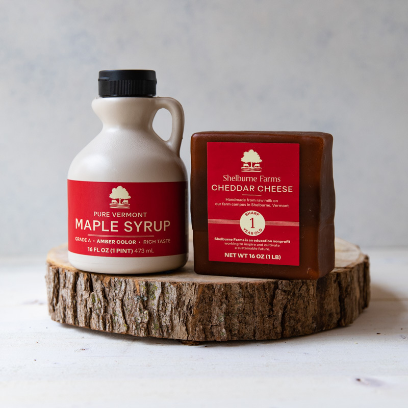 Celebrate the rich landscape of Vermont with gifts combining our award-winning cheddar (from the farm) and Vermont maple products (from the forest). When you purchase our Farm & Forest package, you are supporting sustainable agricultural and forestry.