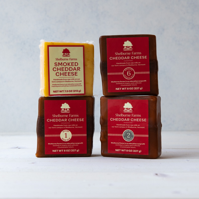 The variety of this sampler is the perfect introduction to explore the flavor profile of our cheddar changes as it ages from 6 months to 1 year to 2 years, plus the delectable result of hickory wood smoking.